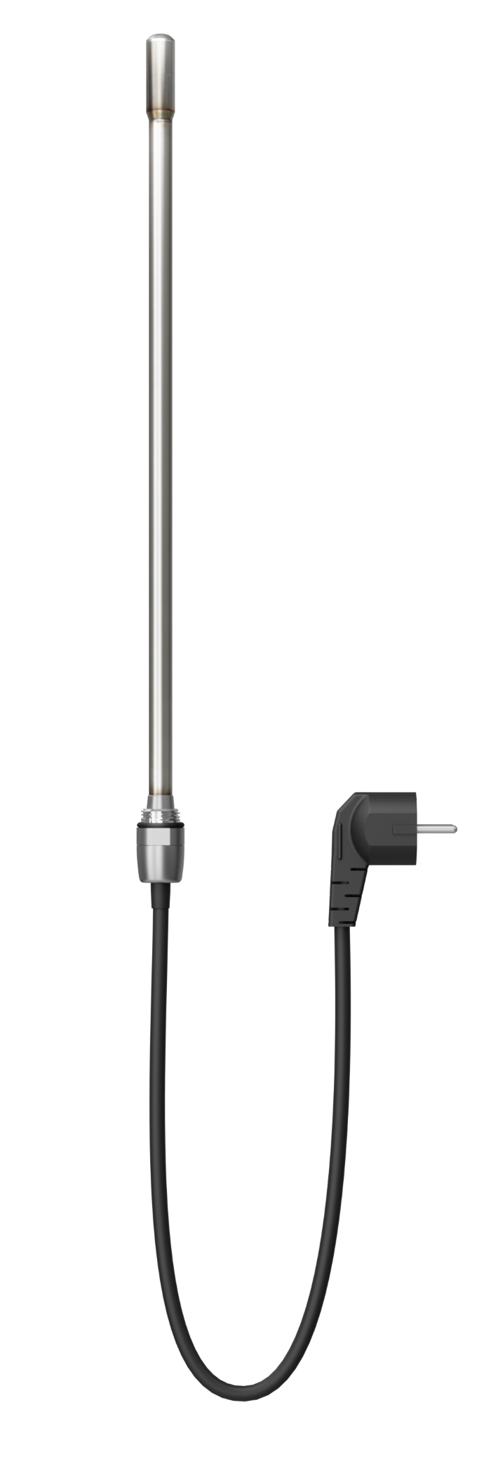 Topná tyč Z bez regulátoru s rovným kabelem o délce 120 cm. Kromě standardní bílé barvy kabelu nabízíme nyní i topnou tyč s černým kabelem. Standardně se instaluje do spodní pravé sběrnice. Požadavek na instalaci do spodní levé sběrnice je nutné uvést do objednávky.