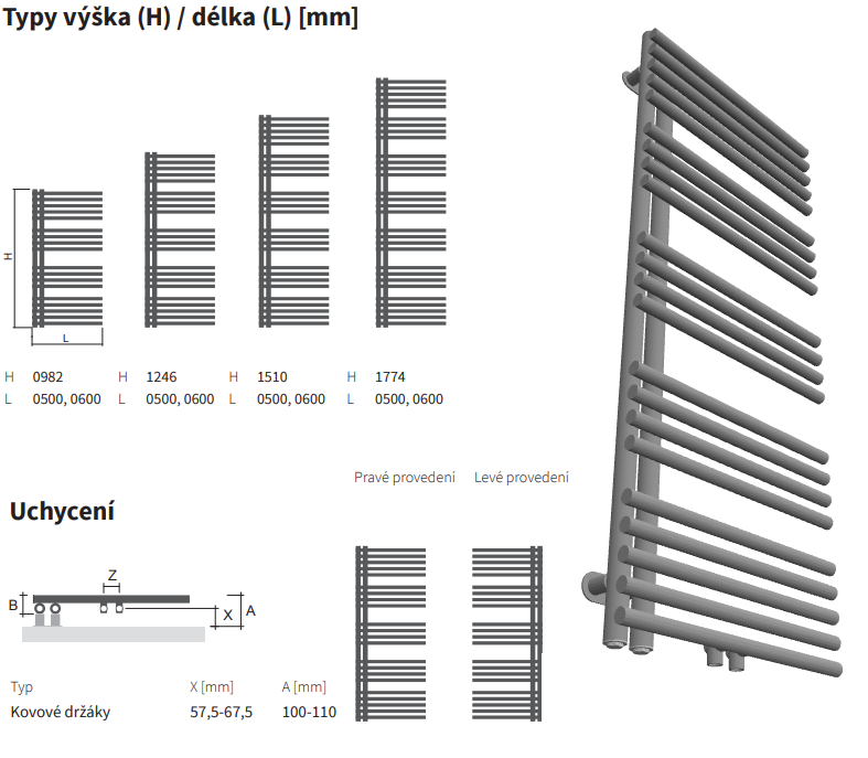 Pro snadnou montáž na stěnu je k dispozici levá i pravá varianta provedení, takže radiátor lze bez problémů přizpůsobit dispozici vaší koupelny.