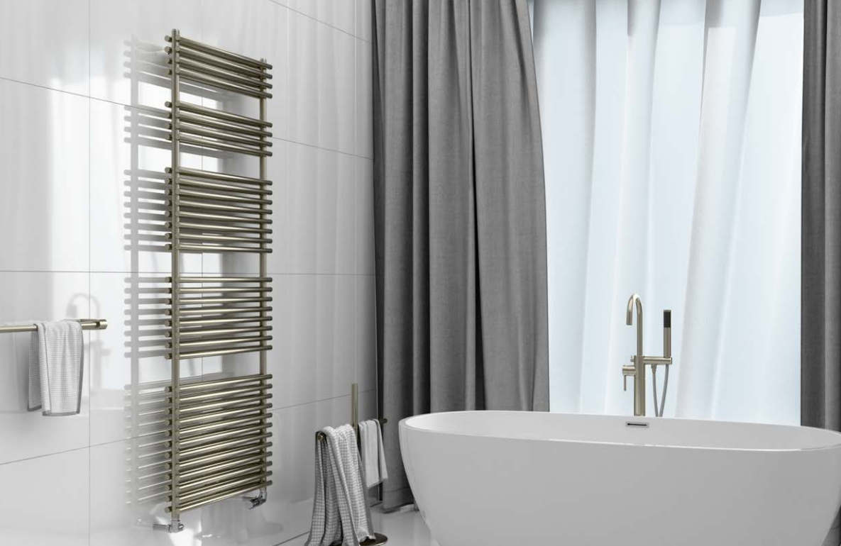 Koupelnový radiátor Ikaria Double je možné připevnit jak na zeď, tak k zemi na montážní nožky, čímž může sloužit jako praktický předěl/stěna v prostoru.