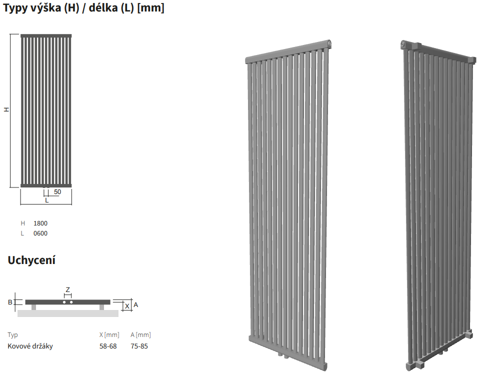 Radiátor Kandavu vyniká čistým a nadčasovým designem, díky kterému se hodí do každé místnosti – od moderních interiérů až po klasické prostory. Vertikální ocelové trubky o průměru 26 mm působí elegantně a zároveň usnadňují údržbu. Radiátor je standardně vybaven středovým připojením s roztečí 50 mm, boční připojení je možné za příplatek. Velkou výhodou je možnost lakování v libovolném odstínu, takže si jej snadno přizpůsobíte konkrétnímu interiéru. Na přání lze radiátor vyrobit i ve variantě se šikminou podle vašeho zadání, což z něj činí flexibilní řešení i pro atypické prostory.