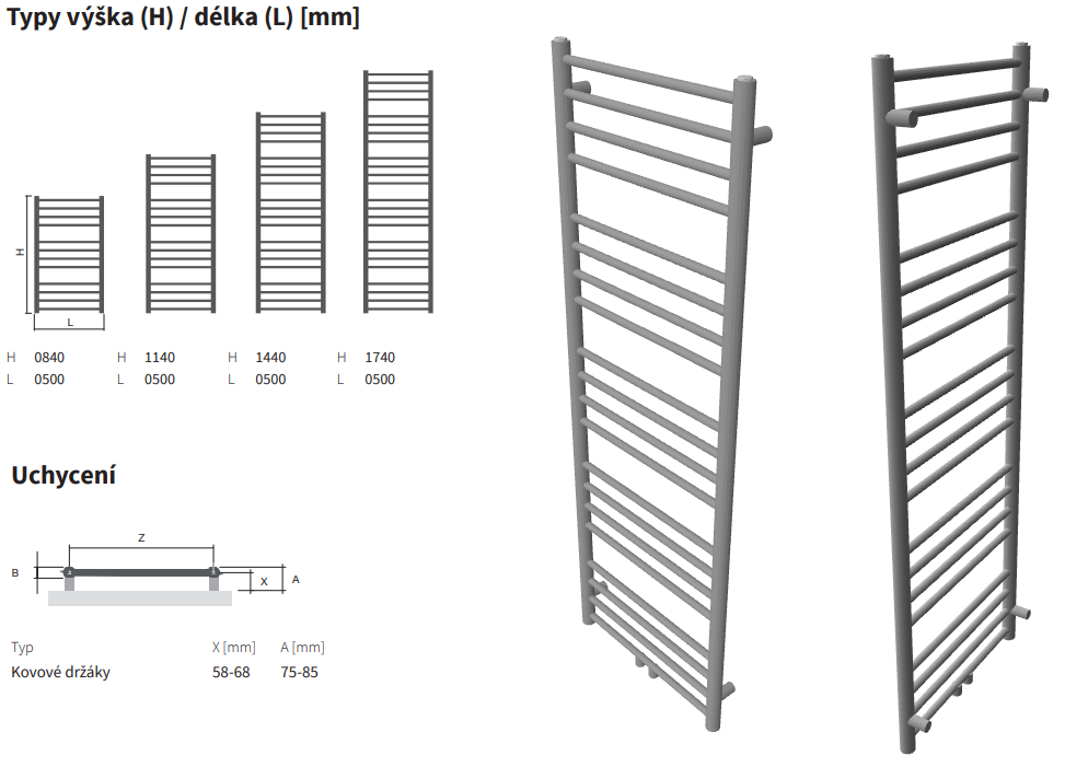 • Součástí dodávky je montážní sada pro bezpečné uchycení radiátoru na stěnu
