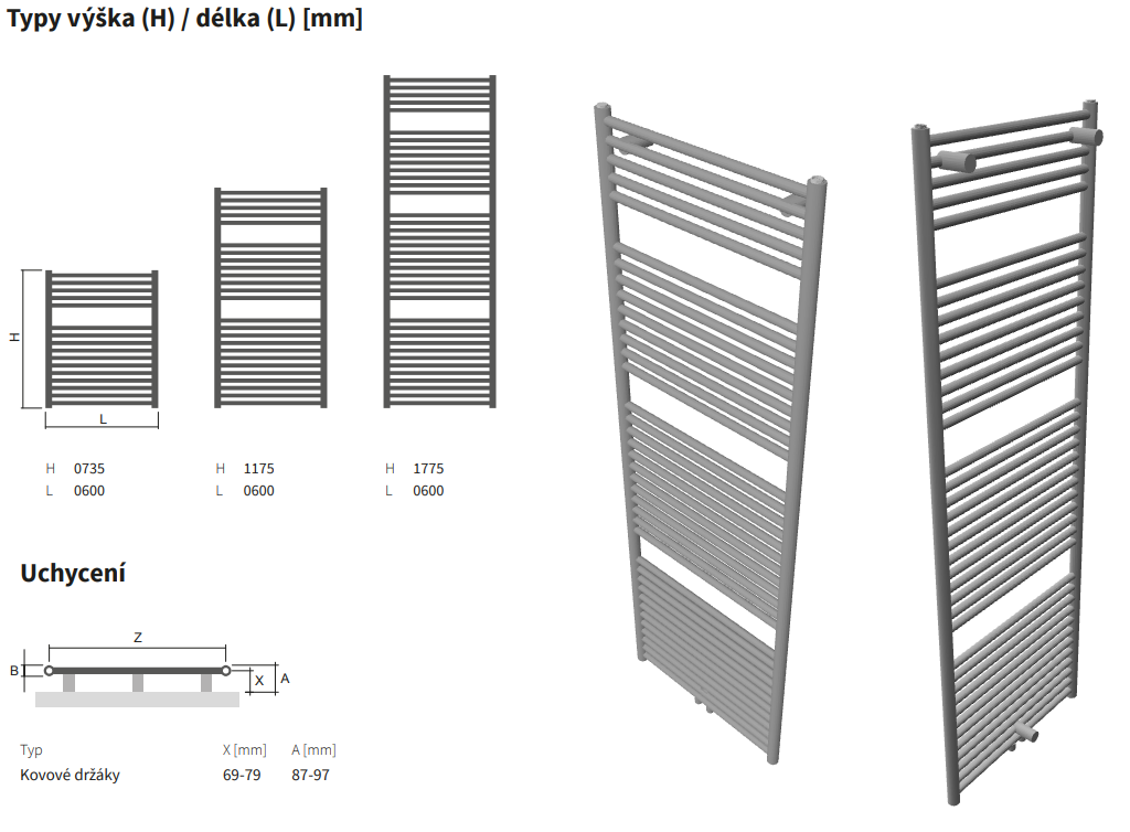 - Součástí dodávky je montážní sada pro bezpečné uchycení radiátoru na stěnu