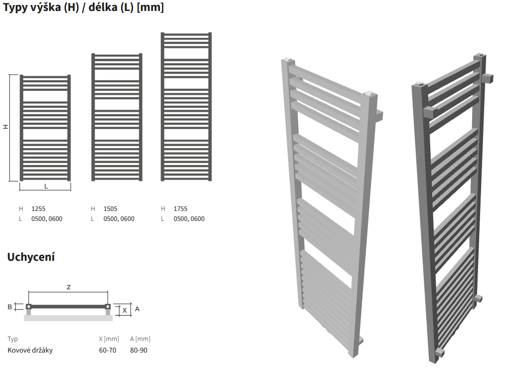 • Součástí dodávky je montážní sada pro bezpečné uchycení radiátoru na stěnu