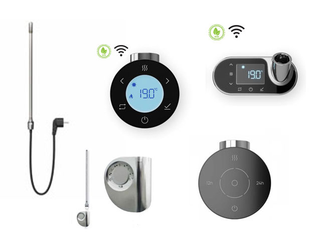 Balení obsahuje termostatickou hlavici, jednobodový rohový termostatický ventil, svorné šroubení, elektrickou topnou tyč dle výběru