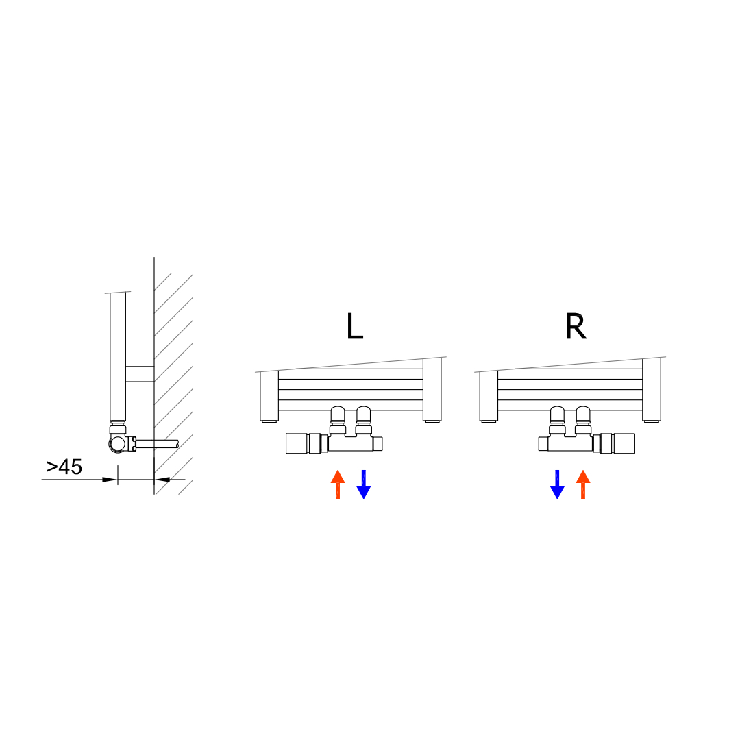 Sada je určena k napojení radiátoru na připojovací trubky ze zdi.