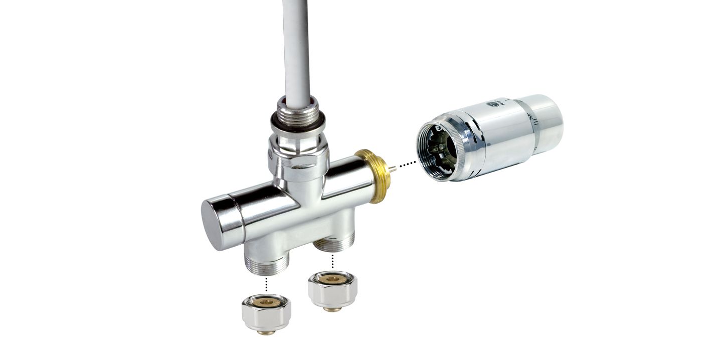 Jednobodová termostatická přímá sada JAGA Deco. Chromovaný ventil nabízíme s termostatickou hlavicí ve variantě provedení bílá, chrom, stříbrná. Svěrné šroubení dle vlastního výběru je součástí sady.