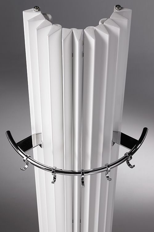 Držák ručníku a držák šatstva mají stejný poloměr jako otopné těleso. Mohou být objednány a namontovány později.