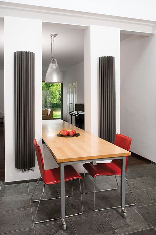 Úzký půlkruhový  radiátor, s poměrně malou hloubkou, který se vejde  i na minimální prostor.