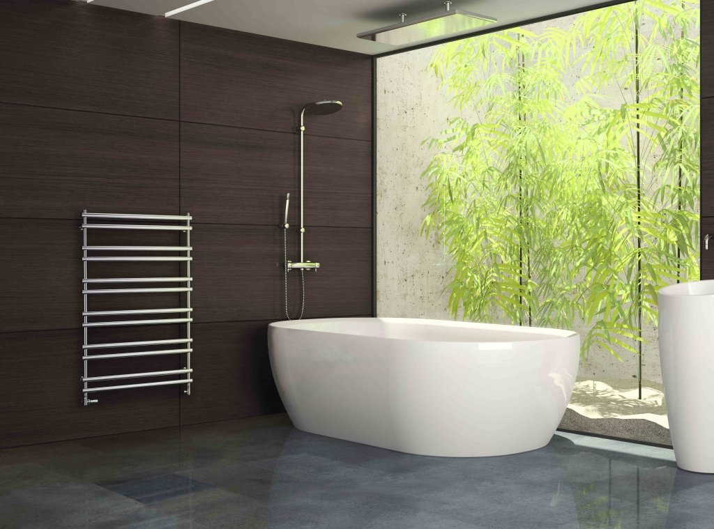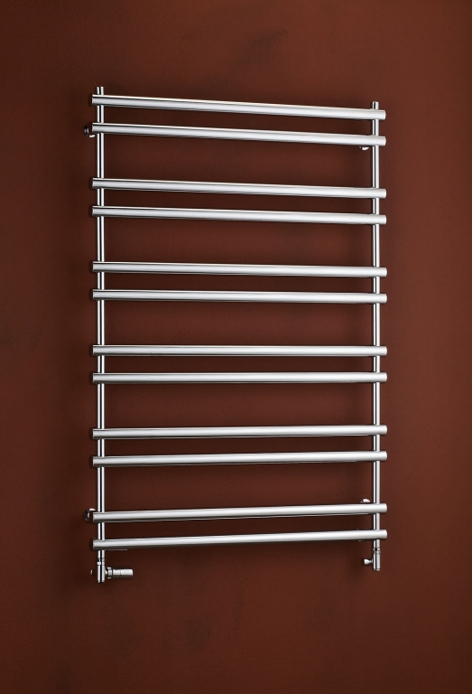 Radiátor P.M.H. Ulysses – koupelnový radiátor zaujme svým neotřelým designem a zrcadlovým leskem. Rozložení příčných trubek žebříku netradičně prochází skrz svislé boční profily. Výběr z šesti rozměrů.
