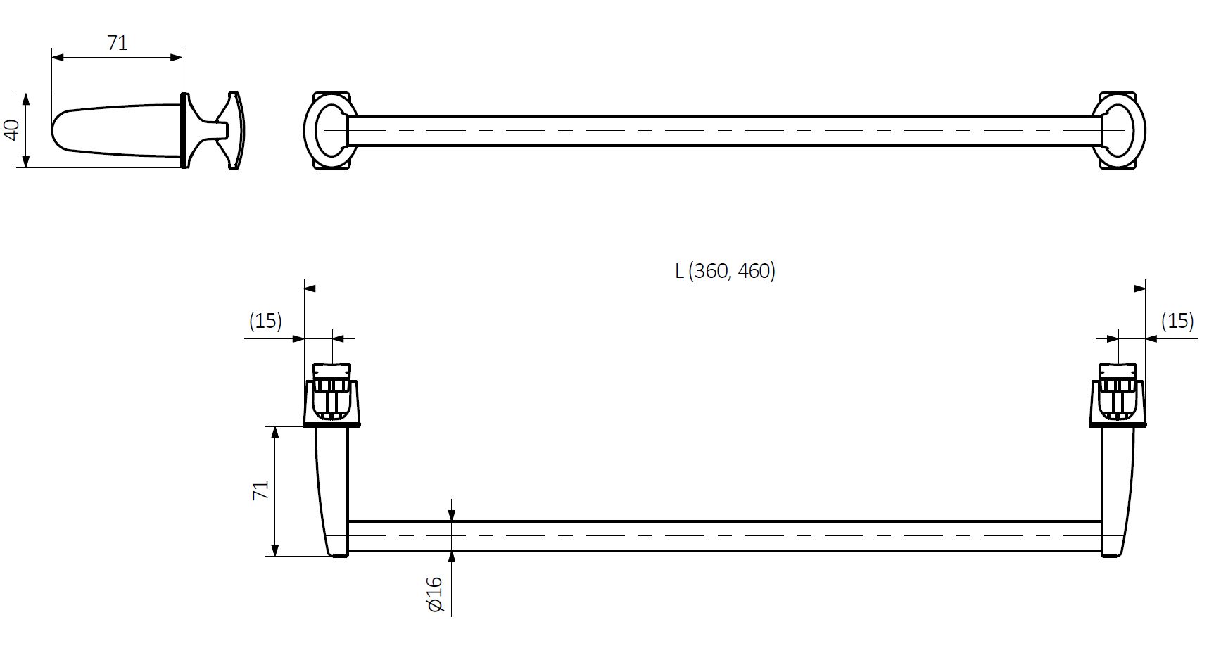 Držák osušky TERMA Basic - rovný je určený pro radiátory s kulatými rovnými příčkami TERMA Fiona, Mike.