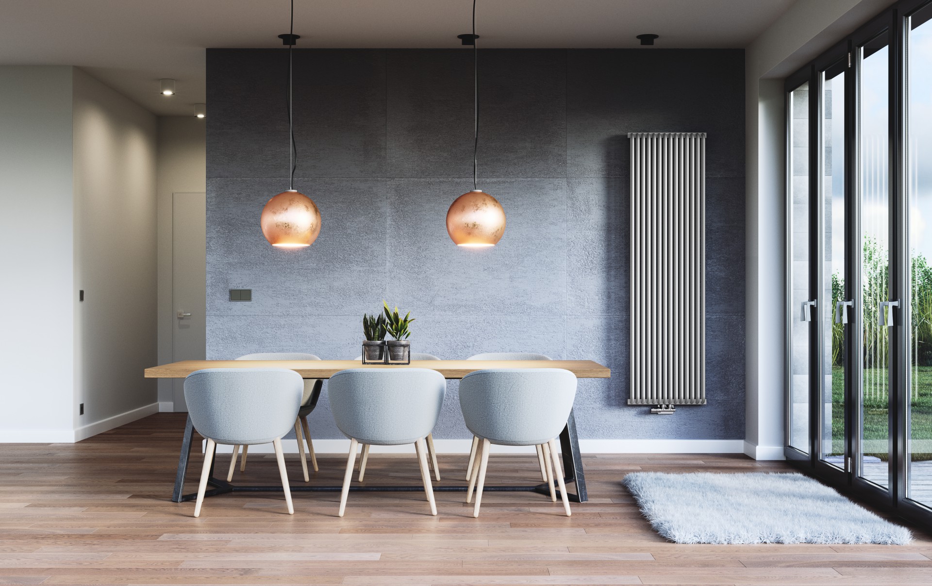 Interiérový dekorativní radiátor TERMA Delfin je v horizontálním provedení výbornou alternativou k tradičním deskovým radiátorům. V majestátní vertikální variantě s dvojitou řadou trubek, generuje vysoký topný výkon.