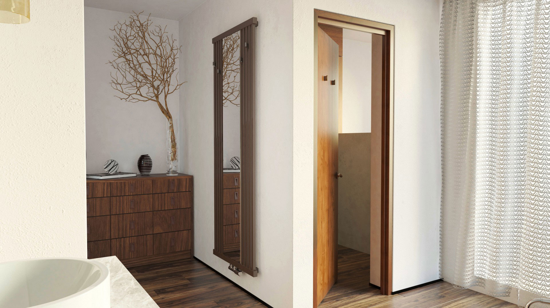 Funkční dekorativní radiátor s centrálně umístěným zrcadlem. Ideální pro předsíně, šatny a ložnice, dělá místnost opticky větší. Může být vybaven vhodnými věšáky ZIP V 20.  K dispozici je v teplovodní variantě.