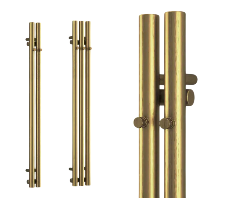 Terma ROLO HANGER E je štíhlý vertikální radiátor z masivních kulatých trubek, ideální do moderních interiérů. Díky integrovaným závěsným háčkům nabízí praktické místo pro odkládání ručníků či oděvů, a proto se skvěle hodí do koupelny, chodby i kuchyně.