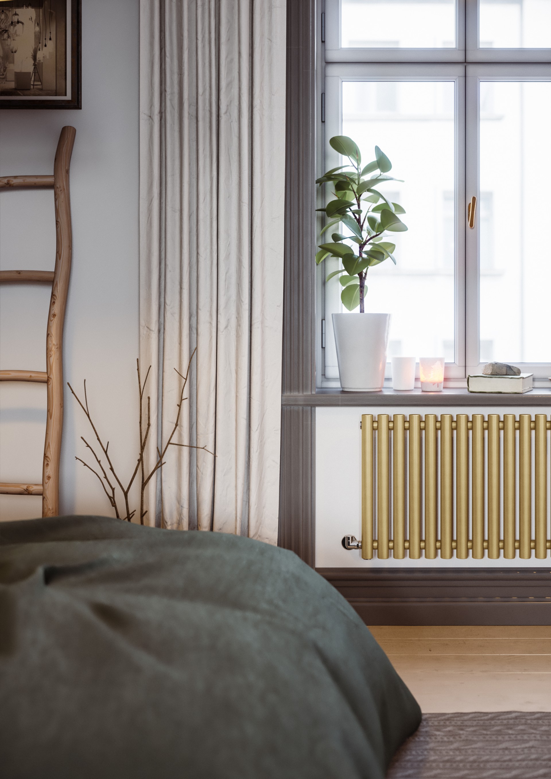 Terma Rolo Room - vertikální radiátor, nadčasový válcový profil trubek, vhodný i pod okno.