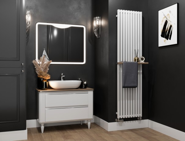 Flexibilní designový radiátor TERMA Triga, provedení na výšku, na šířku, nebo do rohu, s policí, věšákem, nebo zrcadlem, v mnoha rozměrech a barvách!