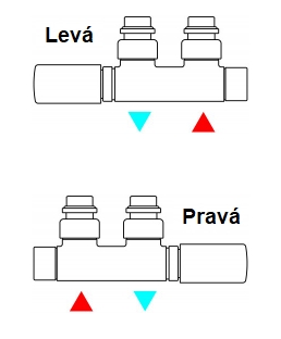 komplexní termostatická rohová sada pro připojení radiátoru ze zdi s roztečí 50 mm.