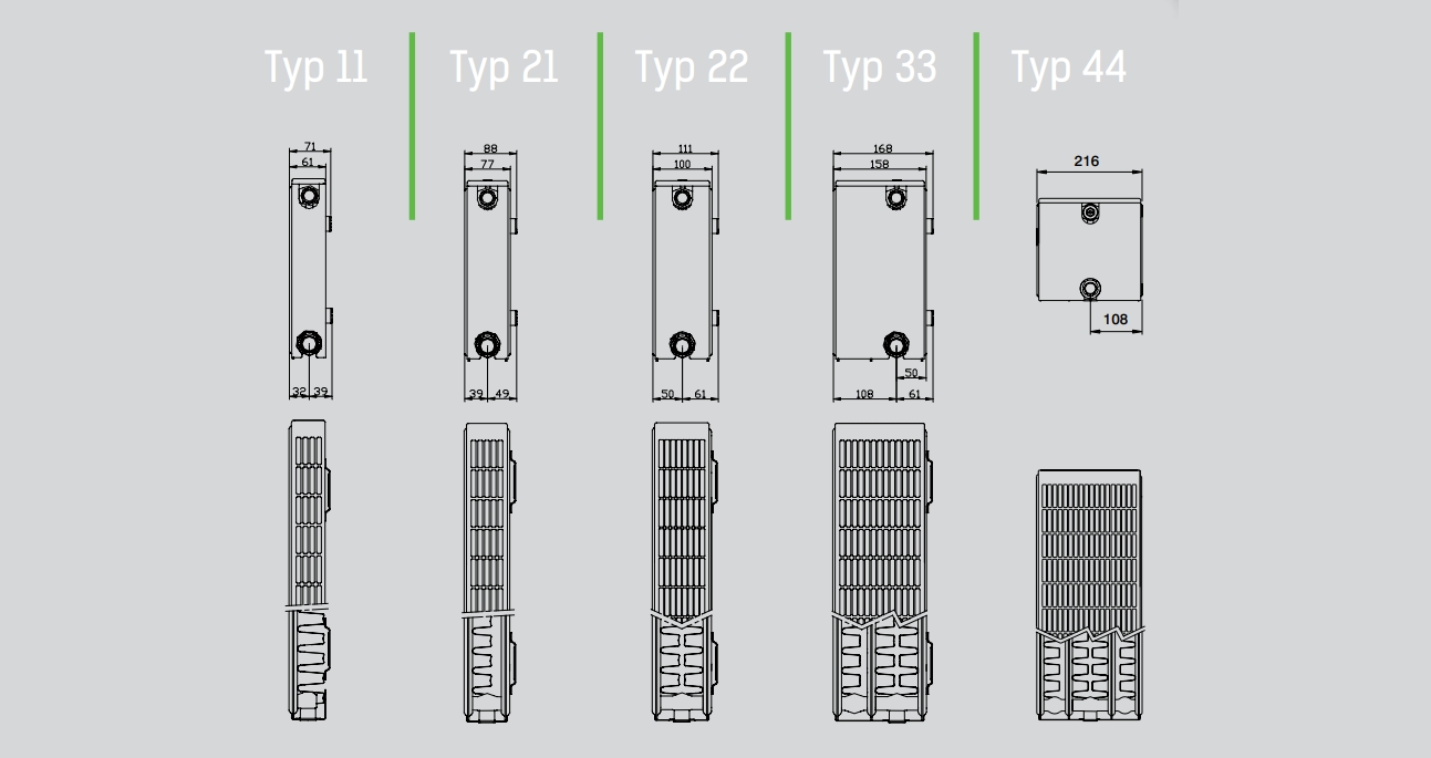 Lacný doskový radiátor - so zvislými profilmi, štyrmi pripojovacími vstupmi na bočné pripojenie. Dodáva sa kompletný vrátane upevňovacieho príslušenstva a bočných dosiek s hornou mriežkou.