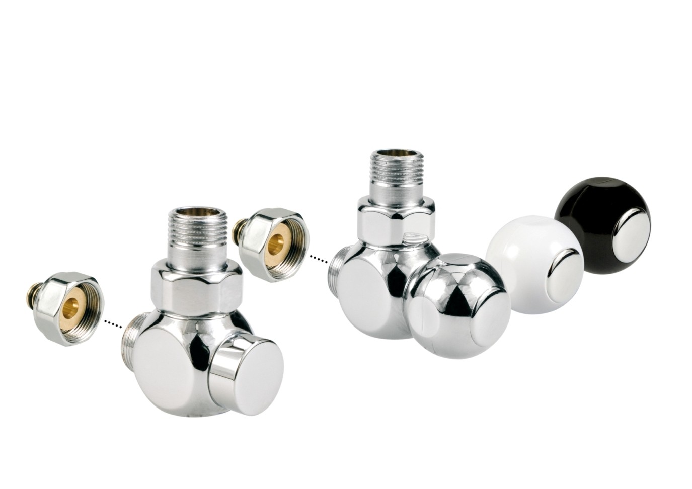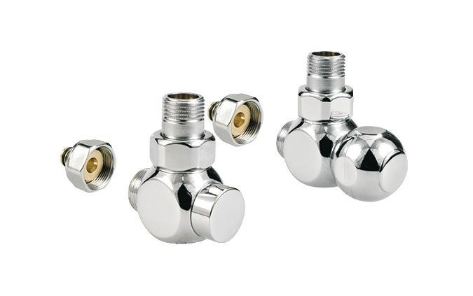 JAGA Deco uzatváracia rohová sada obsahuje chrómový ventil, zverné šróbenie a manuálnu hlavicu podľa vášho výberu.