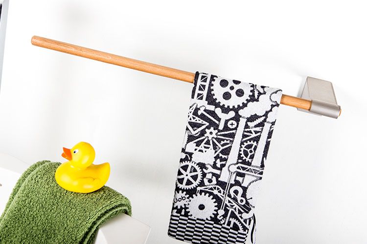 Konzoly sú vyrobené z extrudovaného hliníka a sú k dispozícii v štyroch povrchových úpravách: saténovo matná - dopravná biela, eloxovaný hliník v prírodnej farbe, vzhľad brúsenej nehrdzavejúcej ocele alebo chróm. Držiaky sú k dispozícii v troch rôznych dĺžkach. Tým sa zabezpečí optimálna vzdialenosť medzi držiakom a stenou alebo radiátorom vo všetkých situáciách. Drevená tyč MIKADO je k dispozícii v dvoch dĺžkach a prevedeniach: dub, javor a orech. Na pripevnenie 55 cm dlhého držiaka stačí použiť jeden držiak, ktorý možno podľa preferencií umiestniť buď na koniec, alebo do stredu stĺpa. V prípade držiaka s dĺžkou 85 cm sa musia na upevnenie použiť dva držiaky.