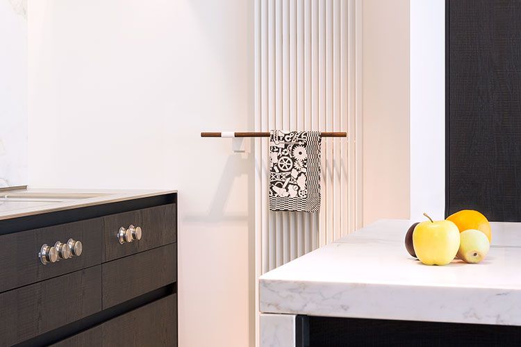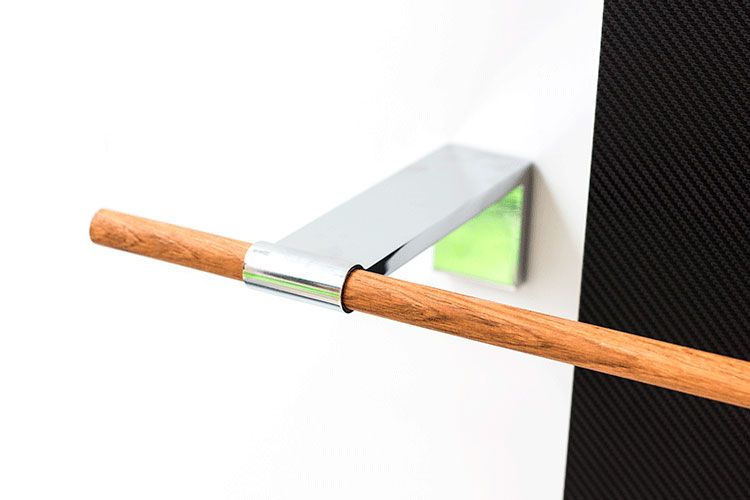 Konzoly sú vyrobené z extrudovaného hliníka a sú k dispozícii v štyroch povrchových úpravách: saténovo matná - dopravná biela, eloxovaný hliník v prírodnej farbe, vzhľad brúsenej nehrdzavejúcej ocele alebo chróm. Držiaky sú k dispozícii v troch rôznych dĺžkach. Tým sa zabezpečí optimálna vzdialenosť medzi držiakom a stenou alebo radiátorom vo všetkých situáciách. Drevená tyč MIKADO je k dispozícii v dvoch dĺžkach a prevedeniach: dub, javor a orech. Na pripevnenie 55 cm dlhého držiaka stačí použiť jeden držiak, ktorý možno podľa preferencií umiestniť buď na koniec, alebo do stredu stĺpa. V prípade držiaka s dĺžkou 85 cm sa musia na upevnenie použiť dva držiaky.