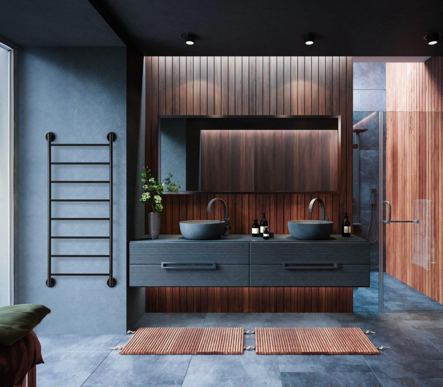 Elektrický sušiak na uteráky s nízkou spotrebou energie sa dodáva vo vyhotovení z nerezovej leštenej ocele, alebo v čiernej farbe.