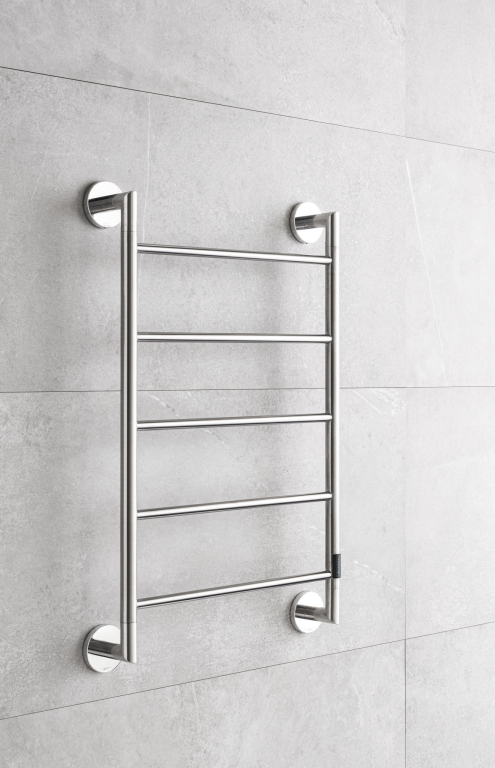 Elektrický sušiak na uteráky s nízkou spotrebou energie sa dodáva vo vyhotovení z nerezovej leštenej ocele, alebo v čiernej farbe.