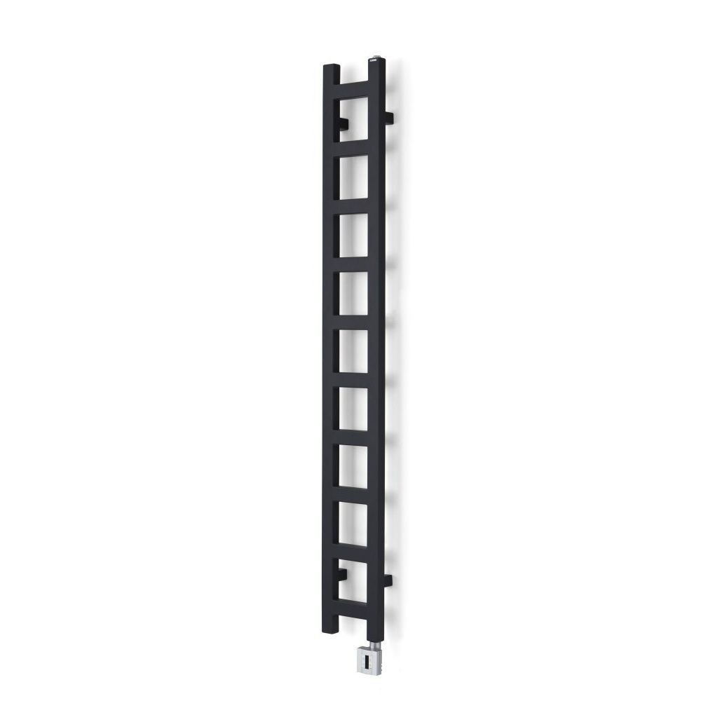Najužší elektrický vykurovací rebrík na trhu. Jednoduchý, bezproblémový dizajn v chrómovom vyhotovení. Korpus možno umiestniť k stene alebo kolmo na ňu a vytvoriť tak funkčnú priečku. Je možné nainštalovať ďalšie drevené police EASY.