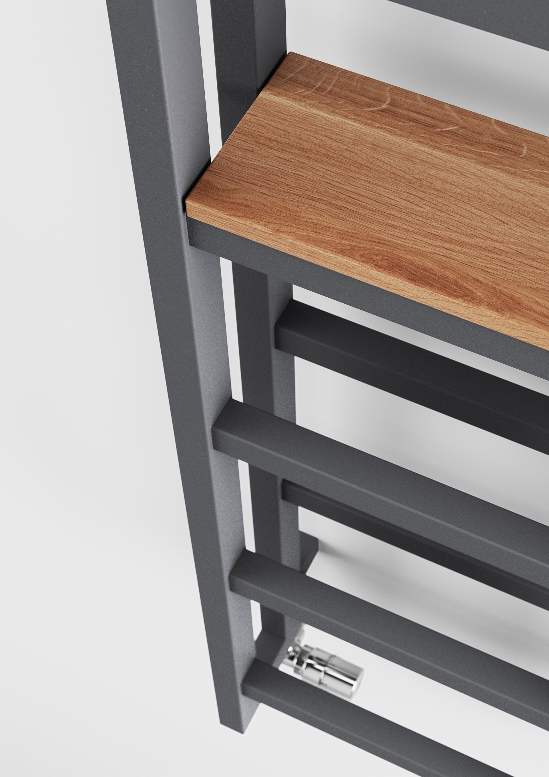 Radiátor inšpirovaný modernou škandinávskou jednoduchosťou, ktorý spája štýl a funkčnosť. Jeho elegantný profil s rovným povrchom a možnosť montáže drevených políc z dubového, bukového alebo teakového dreva z neho robia multifunkčný prvok vo vašej kúpeľni. Drevené poličky sú navrhnuté špeciálne pre tento radiátor, vďaka čomu získate praktický úložný priestor, ktorý zároveň pôsobí ako moderný nábytkový prvok.