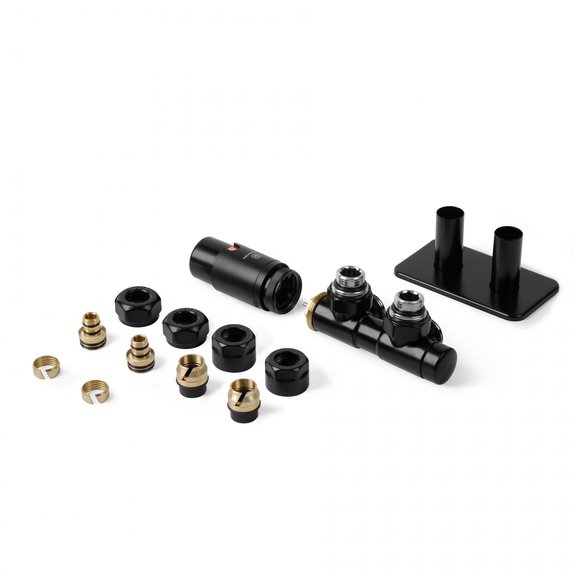 TERMA Twins All In One kompletná termostatická sada ventilov na pripojenie radiátora k armatúram zo steny.