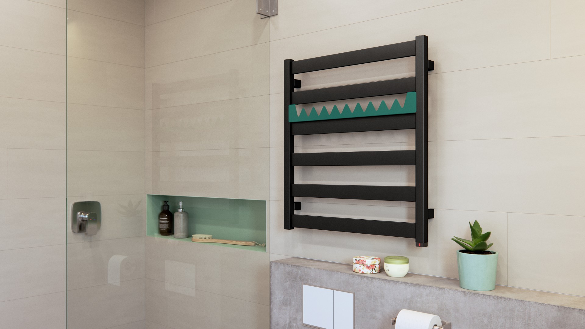 Moderný tvar radiátora VIVO je tvorený kombináciou štvorcových profilov a plochých lamiel a je ideálny do moderných interiérov. Vešiaky HAPPY, špeciálne navrhnuté pre tento model, zlepšujú jeho funkčnosť a dodávajú mu úplne jedinečný, individuálny charakter. Vaše ratolesti si zamilujú ľahko inštalovateľné závesy Happy Shark, Happy Hippo alebo Happy Rabit,. Deti prirodzene priťahujú tieto veselé vzory, ktoré sa dajú ľahko zostaviť alebo rozložiť. Vykurovacia tyč One je ukrytá v zbernici radiátora a je takmer neviditeľná, takže nemení vzhľad celého tvaru radiátora. Umožňuje tiež využívať všetky výhody vykurovacej tyče: možnosť ohrievať a sušiť oblečenie mimo vykurovacej sezóny. K dispozícii je aj funkcia časovača, ktorá automaticky vypne vykurovanie po dvoch hodinách prevádzky. Vykurovacia tyč One má veľmi nízku spotrebu energie, < 0,5 W v pohotovostnom režime.